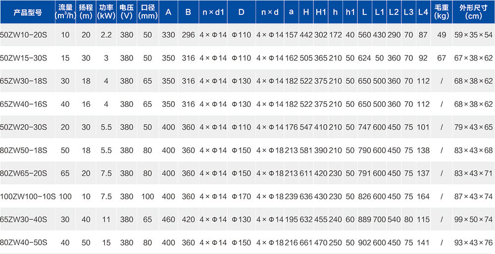 1、ZW-S自吸排污泵采用不銹鋼精密鑄造工藝成型,最大程度保證零部件的表面粗糙度,減低流道內的水力損失,提高電泵效率;